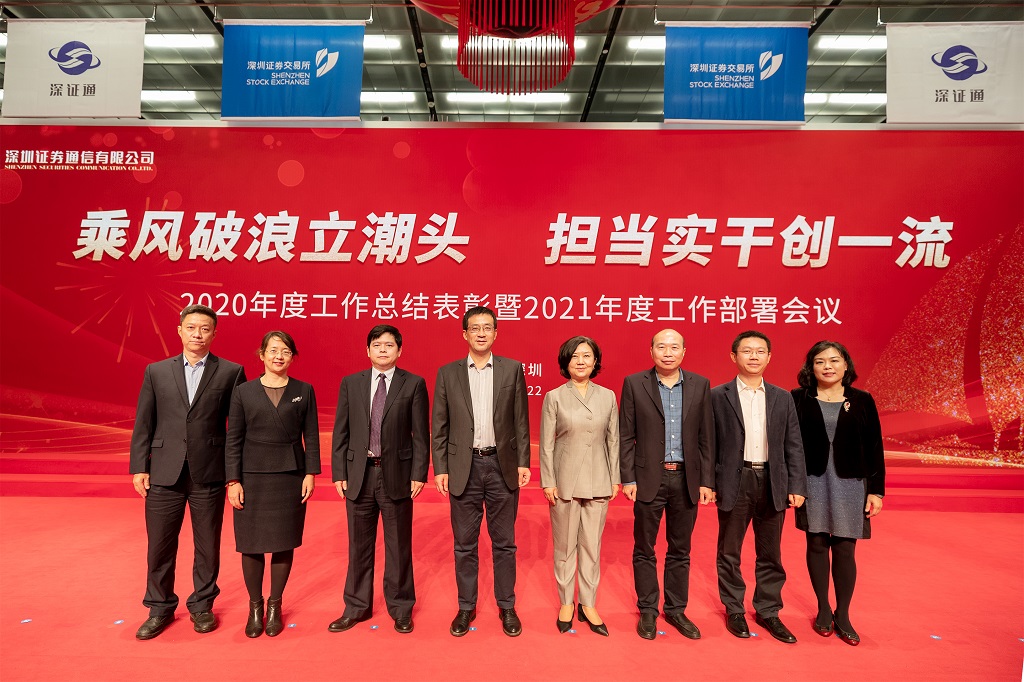 1月22日,深证通召开2020年度工作总结表彰暨2021年度工作部署会议,会议视频回顾公司2020年工作成果,表彰2020年度优秀项目、部室和个人,并部署2021年度重点工作。深交所总工程师喻华丽及相关部室负责人,公司领导、各部门负责人和员工代表在主会场参加会议,其他干部员工通过视频直播、手机直播形式在深圳、东莞、北京、上海等办公区分会场参加会议。